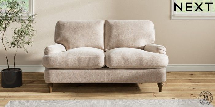 6.12.1 Buy Sadie Deep Relaxed Sit 2 Seater Small Sofa Cotswold Chenille Light Natural High Slim Turned - Mid from the Next UK online shop Click here to use our accessible website