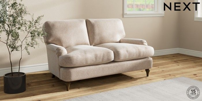 7.0.3 Buy Sadie Deep Relaxed Sit 2 Seater Small Sofa Cotswold Chenille Light Natural High Slim Turned - Mid from the Next UK online shop Click here to use our accessible website