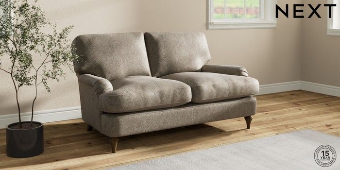 7.0.3 Buy Sadie Deep Relaxed Sit 2 Seater Small Sofa Cotswold Chenille Mid Mink Brown High Slim Turned - Mid from the Next UK online shop Click here to use our accessible website