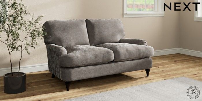 7.0.3 Buy Sadie Deep Relaxed Sit 2 Seater Small Sofa Distressed Velour French Grey High Slim Turned - Dark from the Next UK online shop Click here to use our accessible website