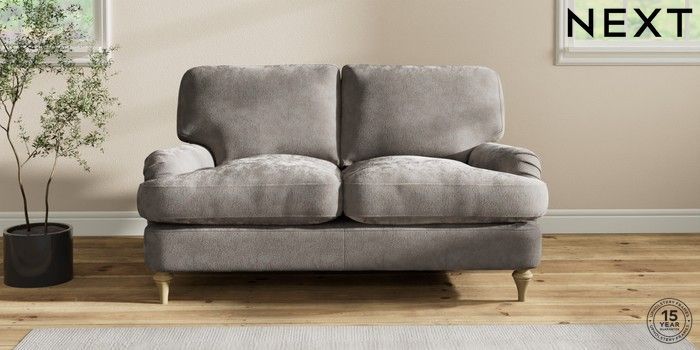 6.12.1 Buy Sadie Deep Relaxed Sit 2 Seater Small Sofa Distressed Velour French Grey High Slim Turned - Light from the Next UK online shop Click here to use our accessible website