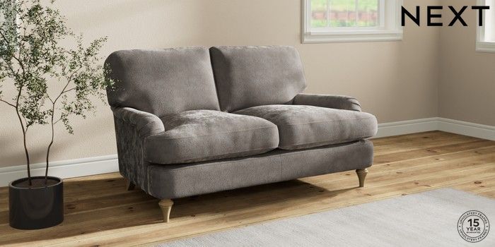 7.0.3 Buy Sadie Deep Relaxed Sit 2 Seater Small Sofa Distressed Velour French Grey High Slim Turned - Light from the Next UK online shop Click here to use our accessible website