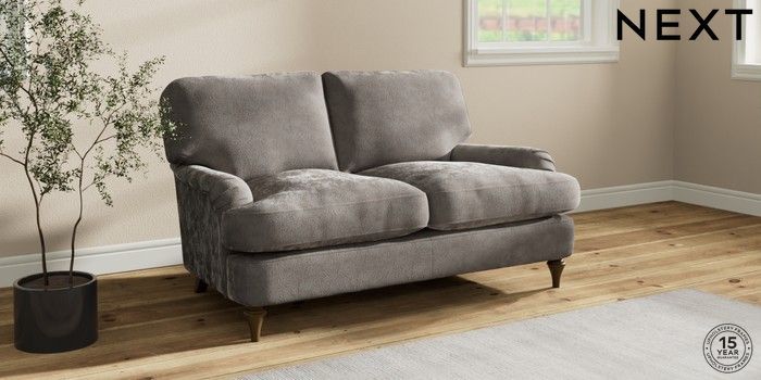 7.0.3 Buy Sadie Deep Relaxed Sit 2 Seater Small Sofa Distressed Velour French Grey High Slim Turned - Mid from the Next UK online shop Click here to use our accessible website