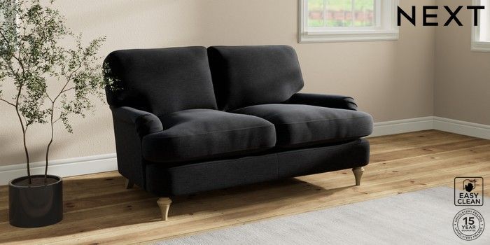 7.0.3 Buy Sadie Deep Relaxed Sit 2 Seater Small Sofa Fine Chenille Easy Clean Black High Slim Turned - Light from the Next UK online shop Click here to use our accessible website