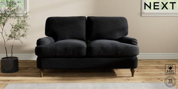 6.12.1 Buy Sadie Deep Relaxed Sit 2 Seater Small Sofa Fine Chenille Easy Clean Black High Slim Turned - Mid from the Next UK online shop Click here to use our accessible website