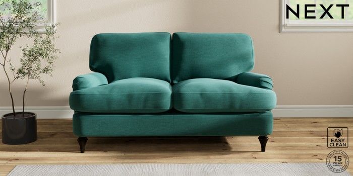 6.12.1 Buy Sadie Deep Relaxed Sit 2 Seater Small Sofa Fine Chenille Easy Clean Dark Juniper Green High Slim Turned - Dark from the Next UK online shop Click here to use our accessible website