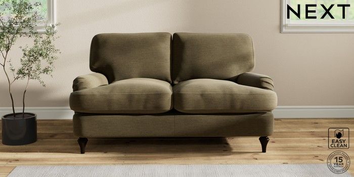 6.12.1 Buy Sadie Deep Relaxed Sit 2 Seater Small Sofa Fine Chenille Easy Clean Dark Moss Green High Slim Turned - Dark from the Next UK online shop Click here to use our accessible website