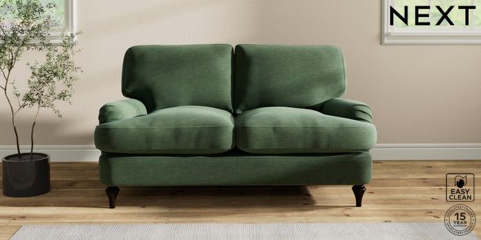 6.12.1 Buy Sadie Deep Relaxed Sit 2 Seater Small Sofa Fine Chenille Easy Clean Mid Khaki Green High Slim Turned - Dark from the Next UK online shop Click here to use our accessible website