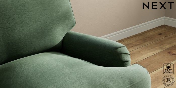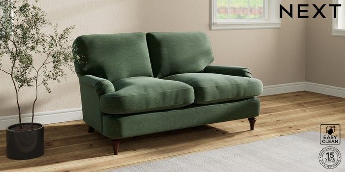 7.0.3 Buy Sadie Deep Relaxed Sit 2 Seater Small Sofa Fine Chenille Easy Clean Mid Khaki Green High Slim Turned - Dark Brown from the Next UK online shop Click here to use our accessible website