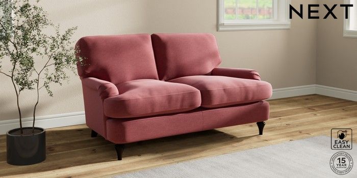 7.0.3 Buy Sadie Deep Relaxed Sit 2 Seater Small Sofa Fine Chenille Easy Clean Mid Pink High Slim Turned - Dark from the Next UK online shop Click here to use our accessible website