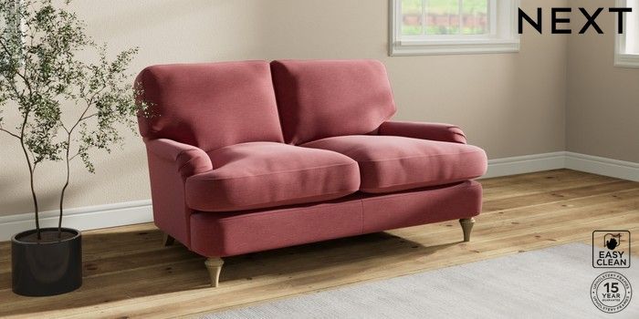 7.0.3 Buy Sadie Deep Relaxed Sit 2 Seater Small Sofa Fine Chenille Easy Clean Mid Pink High Slim Turned - Light from the Next UK online shop Click here to use our accessible website