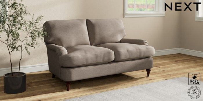 7.0.3 Buy Sadie Deep Relaxed Sit 2 Seater Small Sofa Fine Chenille Easy Clean Mid Taupe Brown High Slim Turned - Dark Brown from the Next UK online shop Click here to use our accessible website