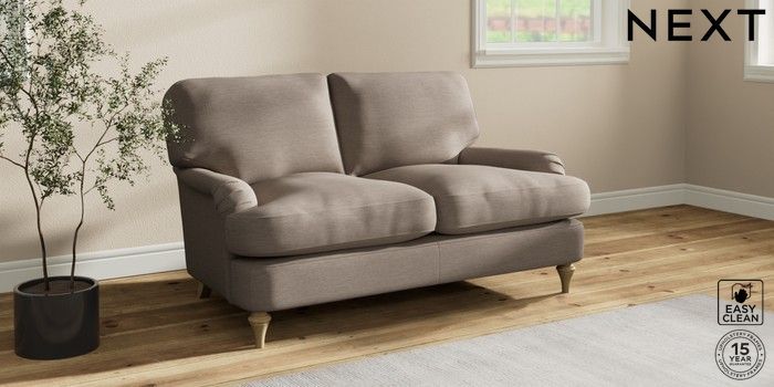 7.0.3 Buy Sadie Deep Relaxed Sit 2 Seater Small Sofa Fine Chenille Easy Clean Mid Taupe Brown High Slim Turned - Light from the Next UK online shop Click here to use our accessible website