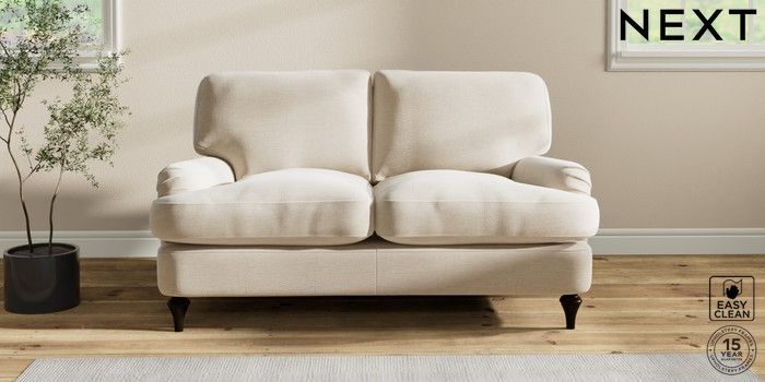 6.12.1 Buy Sadie Deep Relaxed Sit 2 Seater Small Sofa Fine Chenille Easy Clean Oyster High Slim Turned - Dark from the Next UK online shop Click here to use our accessible website
