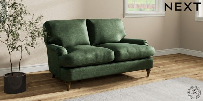 7.0.3 Buy Sadie Deep Relaxed Sit 2 Seater Small Sofa Luxe Chenille Dark Green High Slim Turned - Mid from the Next UK online shop Click here to use our accessible website