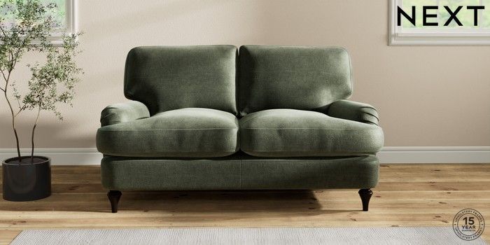 6.12.1 Buy Sadie Deep Relaxed Sit 2 Seater Small Sofa Luxe Chenille Mid Green High Slim Turned - Dark from the Next UK online shop Click here to use our accessible website