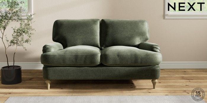 6.12.1 Buy Sadie Deep Relaxed Sit 2 Seater Small Sofa Luxe Chenille Mid Green High Slim Turned - Light from the Next UK online shop Click here to use our accessible website