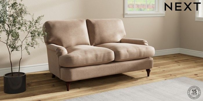 7.0.3 Buy Sadie Deep Relaxed Sit 2 Seater Small Sofa Luxe Chenille Mid Natural High Slim Turned - Dark Brown from the Next UK online shop Click here to use our accessible website