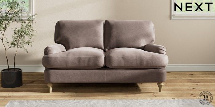 6.12.1 Buy Sadie Deep Relaxed Sit 2 Seater Small Sofa Luxe Chenille Mink Brown High Slim Turned - Light from the Next UK online shop Click here to use our accessible website
