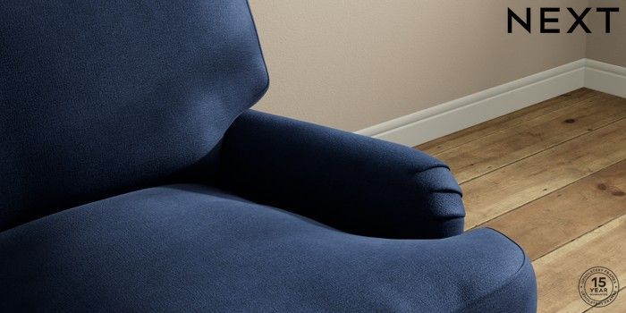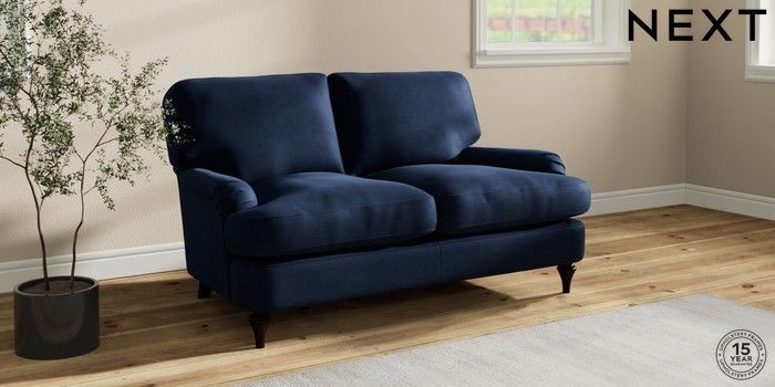 7.0.3 Buy Sadie Deep Relaxed Sit 2 Seater Small Sofa Luxe Chenille Navy Blue High Slim Turned - Dark from the Next UK online shop Click here to use our accessible website