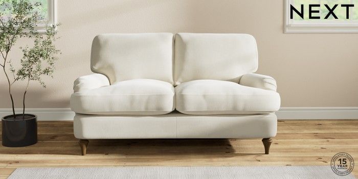 7.0.3 Buy Sadie Deep Relaxed Sit 2 Seater Small Sofa Luxe Chenille Oyster High Slim Turned - Mid from the Next UK online shop Click here to use our accessible website