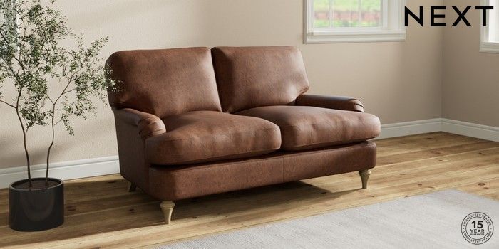 7.0.3 Buy Sadie Deep Relaxed Sit 2 Seater Small Sofa Monza Faux Leather Easy Clean Chestnut Brown High Slim Turned - Light from the Next UK online shop Click here to use our accessible website