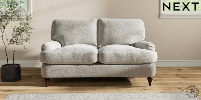 7.2.6 Buy Sadie Deep Relaxed Sit 2 Seater Small Sofa Multi Weave Light Blue High Slim Turned - Dark Brown from the Next UK online shop Click here to use our accessible website