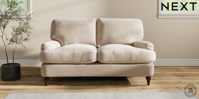7.2.6 Buy Sadie Deep Relaxed Sit 2 Seater Small Sofa Multi Weave Mid Natural High Slim Turned - Dark Brown from the Next UK online shop Click here to use our accessible website