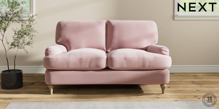 6.12.1 Buy Sadie Deep Relaxed Sit 2 Seater Small Sofa Natural Mix Light Rose Pink High Slim Turned - Light from the Next UK online shop Click here to use our accessible website