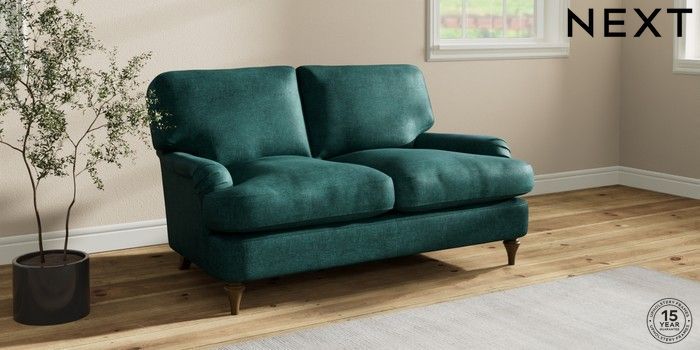 7.0.3 Buy Sadie Deep Relaxed Sit 2 Seater Small Sofa Plush Chenille Dark Teal Green High Slim Turned - Mid from the Next UK online shop Click here to use our accessible website