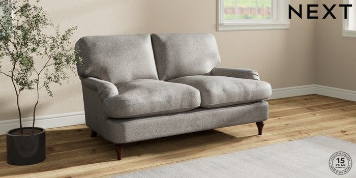 7.0.3 Buy Sadie Deep Relaxed Sit 2 Seater Small Sofa Plush Chenille Light Grey High Slim Turned - Dark Brown from the Next UK online shop Click here to use our accessible website