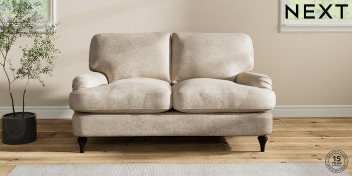 6.12.1 Buy Sadie Deep Relaxed Sit 2 Seater Small Sofa Plush Chenille Light Natural High Slim Turned - Dark from the Next UK online shop Click here to use our accessible website