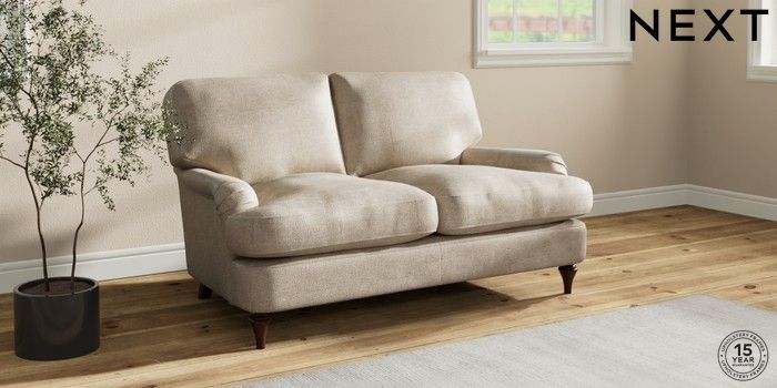 7.0.3 Buy Sadie Deep Relaxed Sit 2 Seater Small Sofa Plush Chenille Light Natural High Slim Turned - Dark Brown from the Next UK online shop Click here to use our accessible website