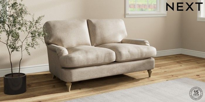 7.0.3 Buy Sadie Deep Relaxed Sit 2 Seater Small Sofa Plush Chenille Light Natural High Slim Turned - Light from the Next UK online shop Click here to use our accessible website