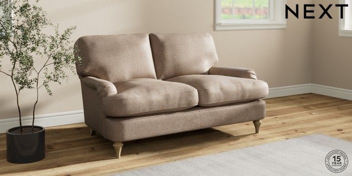 7.0.3 Buy Sadie Deep Relaxed Sit 2 Seater Small Sofa Plush Chenille Mid Natural High Slim Turned - Light from the Next UK online shop Click here to use our accessible website