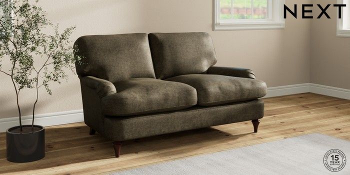 7.0.3 Buy Sadie Deep Relaxed Sit 2 Seater Small Sofa Plush Chenille Moss Green High Slim Turned - Dark Brown from the Next UK online shop Click here to use our accessible website