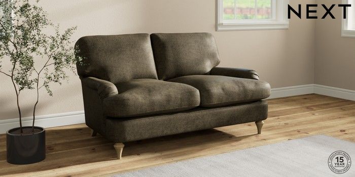 7.0.3 Buy Sadie Deep Relaxed Sit 2 Seater Small Sofa Plush Chenille Moss Green High Slim Turned - Light from the Next UK online shop Click here to use our accessible website