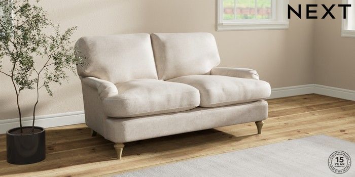 7.0.3 Buy Sadie Deep Relaxed Sit 2 Seater Small Sofa Plush Chenille Oyster High Slim Turned - Light from the Next UK online shop Click here to use our accessible website