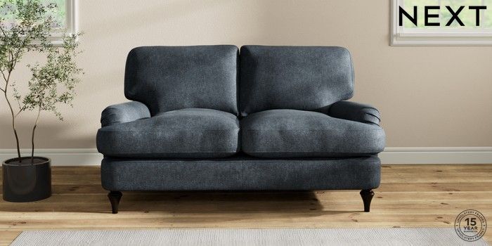 6.12.1 Buy Sadie Deep Relaxed Sit 2 Seater Small Sofa Plush Chenille Slate Blue High Slim Turned - Dark from the Next UK online shop Click here to use our accessible website