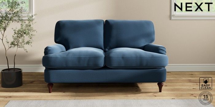 6.12.1 Buy Sadie Deep Relaxed Sit 2 Seater Small Sofa Plush Velvet Easy Clean Airforce Blue High Slim Turned - Dark Brown from the Next UK online shop Click here to use our accessible website