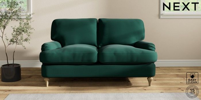 6.12.1 Buy Sadie Deep Relaxed Sit 2 Seater Small Sofa Plush Velvet Easy Clean Bottle Green High Slim Turned - Light from the Next UK online shop Click here to use our accessible website
