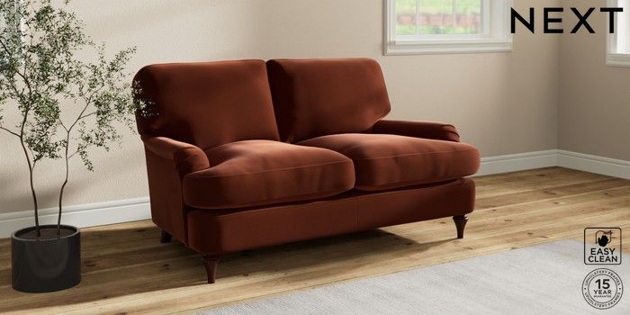 7.0.3 Buy Sadie Deep Relaxed Sit 2 Seater Small Sofa Plush Velvet Easy Clean Ginger Orange High Slim Turned - Dark Brown from the Next UK online shop Click here to use our accessible website