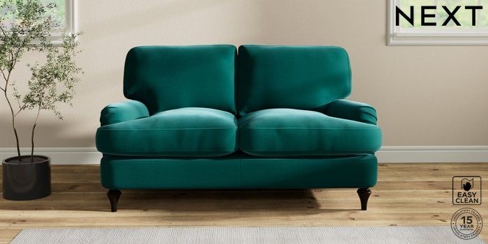 6.12.1 Buy Sadie Deep Relaxed Sit 2 Seater Small Sofa Plush Velvet Easy Clean Juniper Green High Slim Turned - Dark from the Next UK online shop Click here to use our accessible website
