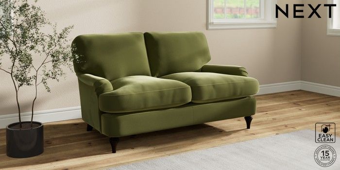 7.0.3 Buy Sadie Deep Relaxed Sit 2 Seater Small Sofa Plush Velvet Easy Clean Mid Olive Green High Slim Turned - Dark from the Next UK online shop Click here to use our accessible website