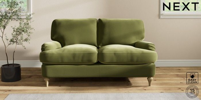6.12.1 Buy Sadie Deep Relaxed Sit 2 Seater Small Sofa Plush Velvet Easy Clean Mid Olive Green High Slim Turned - Light from the Next UK online shop Click here to use our accessible website