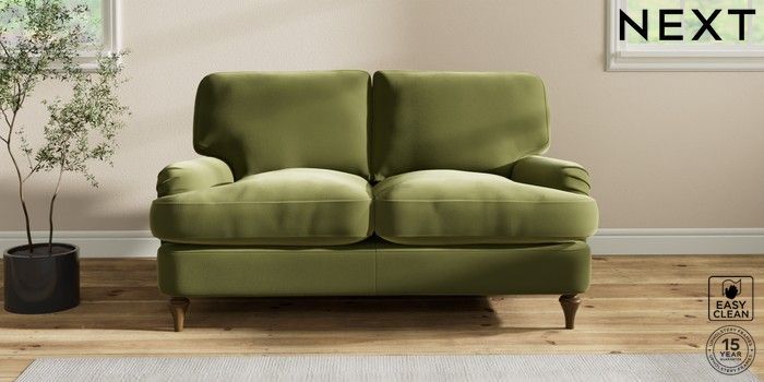 6.12.1 Buy Sadie Deep Relaxed Sit 2 Seater Small Sofa Plush Velvet Easy Clean Mid Olive Green High Slim Turned - Mid from the Next UK online shop Click here to use our accessible website