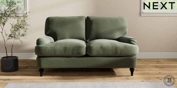 6.12.1 Buy Sadie Deep Relaxed Sit 2 Seater Small Sofa Relaxed Linen Look Dark Green High Slim Turned - Dark from the Next UK online shop Click here to use our accessible website