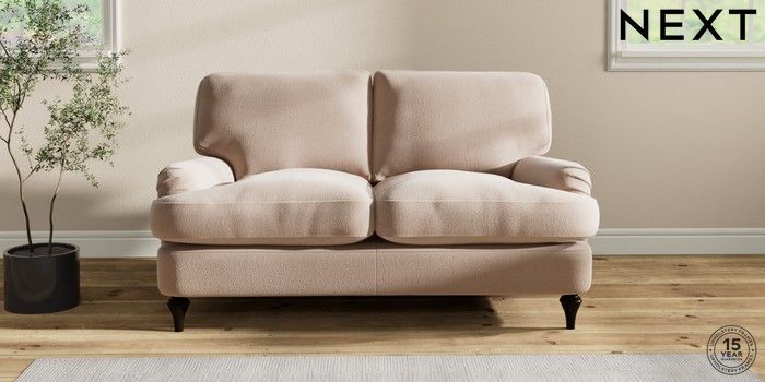 6.12.1 Buy Sadie Deep Relaxed Sit 2 Seater Small Sofa Relaxed Linen Look Mid Natural High Slim Turned - Dark from the Next UK online shop Click here to use our accessible website