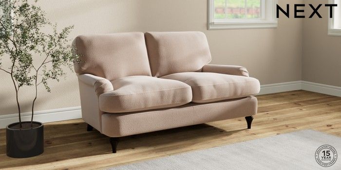 7.0.3 Buy Sadie Deep Relaxed Sit 2 Seater Small Sofa Relaxed Linen Look Mid Natural High Slim Turned - Dark from the Next UK online shop Click here to use our accessible website