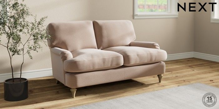 7.0.3 Buy Sadie Deep Relaxed Sit 2 Seater Small Sofa Relaxed Linen Look Mid Natural High Slim Turned - Light from the Next UK online shop Click here to use our accessible website